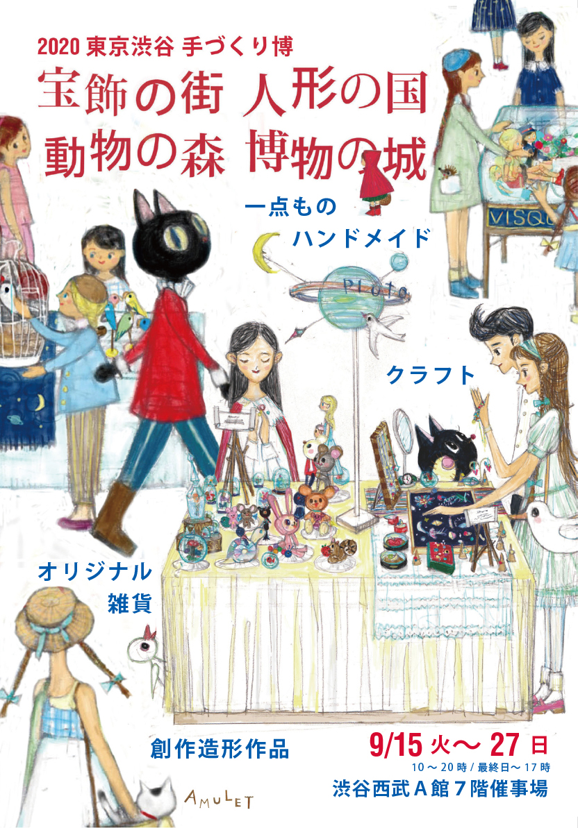 | 2021年8月10日~15日 | 東京渋谷手づくり博「宝飾の街 人形の国 動物の森」(主催:AMULET)コーナー出展 | 東京・渋谷西武A館7階催事場 | ![]() | |