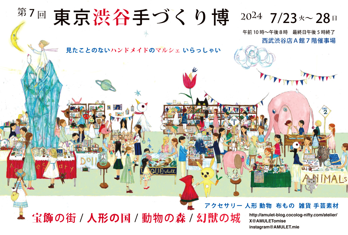 | 2024年7月23日~28日 | 東京渋谷手づくり博「宝飾の街 人形の国 動物の森 幻獣の城」(主催:AMULET)コーナー出展 | 東京・渋谷西武A館7階催事場 | ![]() | |