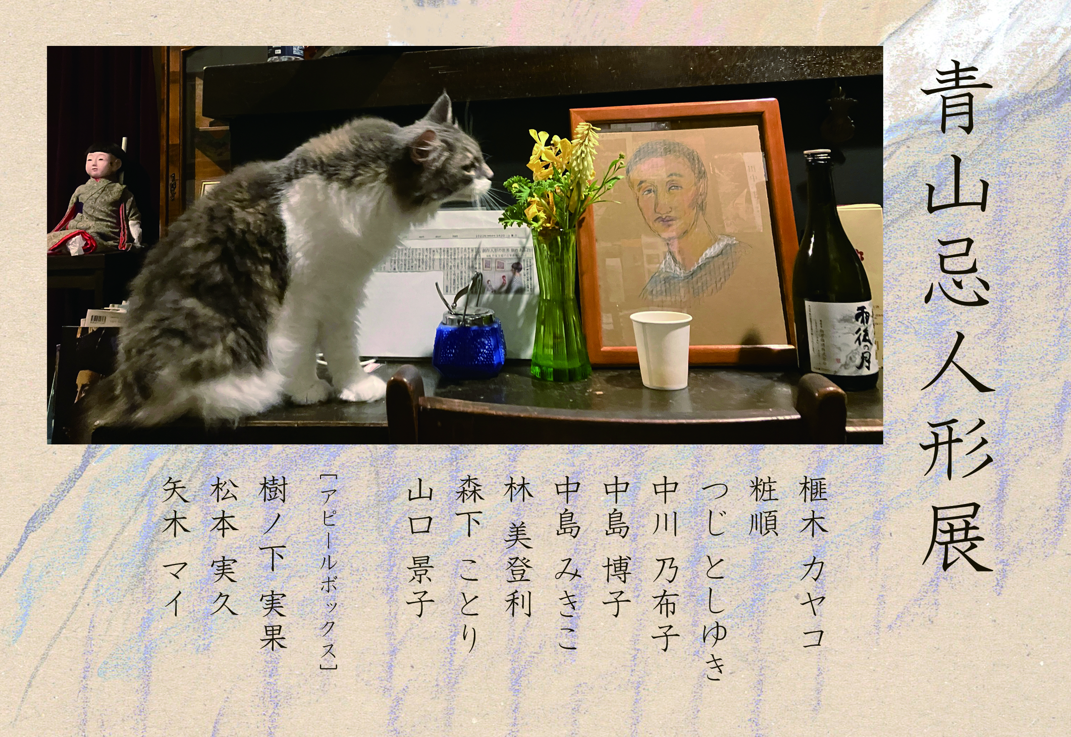 | 2021年9月3日~8日 | 青山忌人形展(主催:青山忌人形展実行委員会) | 京都・昔人形青山/K1ドヲル | ![]() | 青山恵一追悼展の後、引き続きご命日に人形展を開催することに。大阪のアラビク・乙女屋とともに実行委員会を立ち上げ毎年共同で企画。 |