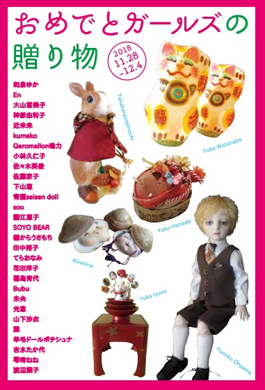 | 2018年11月28日~12月4日 | おめでとガールズの贈り物 | 兵庫・大丸神戸店 7階中央イベントスペース | ![]() | お正月の縁起物やクリスマスプレゼントをテーマにした人形イベント。23年まで毎年開催。 |