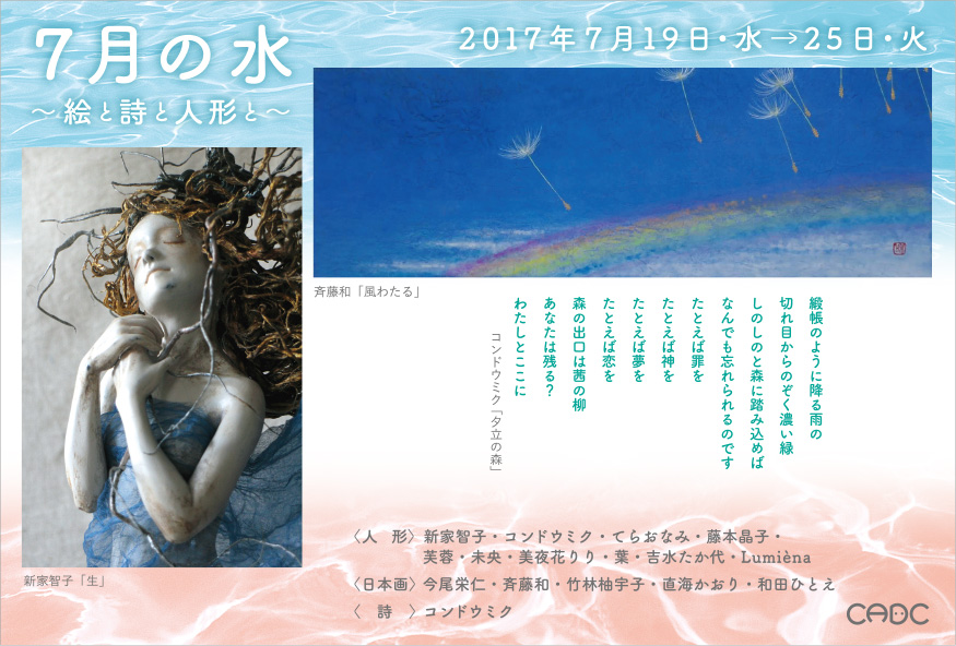 | 2017年7月19日~25日 | クラフトアート人形コンクール選抜展「7月の水」(出展:新家智子ほか) | 大阪・大丸心斎橋店 北館12階 美術画廊 | ![]() | |
