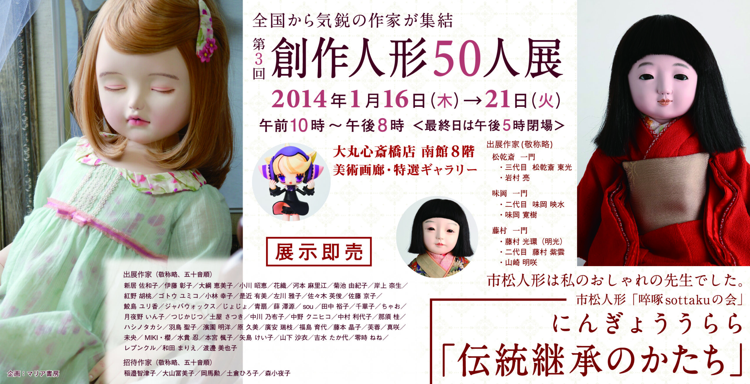 | 2013年1月16日~21日 | 人気作家50人による創作人形展 | 大阪・大丸心斎橋店 本館7階 催事会場 | ||