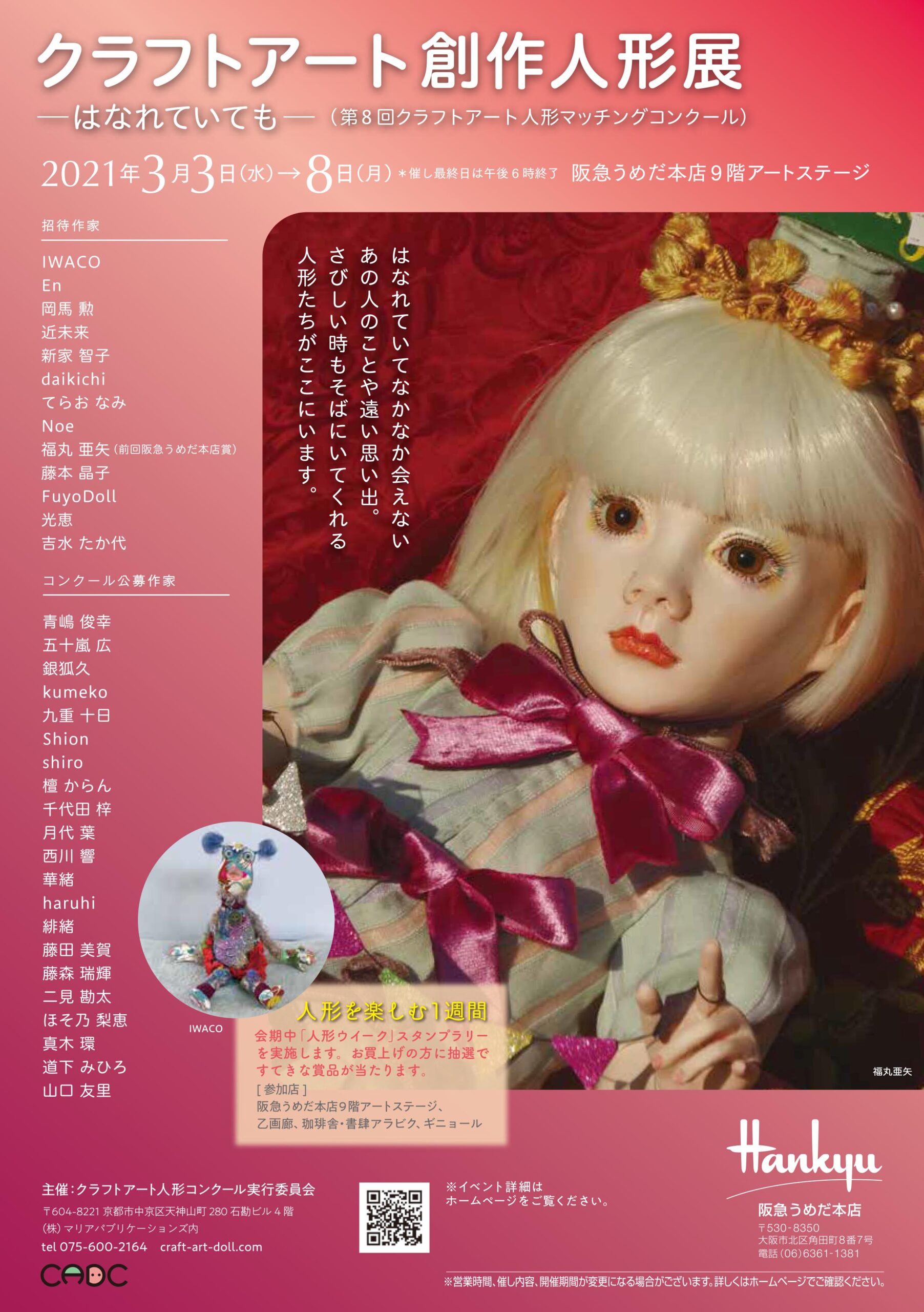 | 2021年3月3日~8日 | クラフトアート創作人形展(第8回クラフトアート人形コンクール)~はなれていても~【大阪展】 | 大阪・阪急うめだ本店 9階アートステージ | ![]() | |