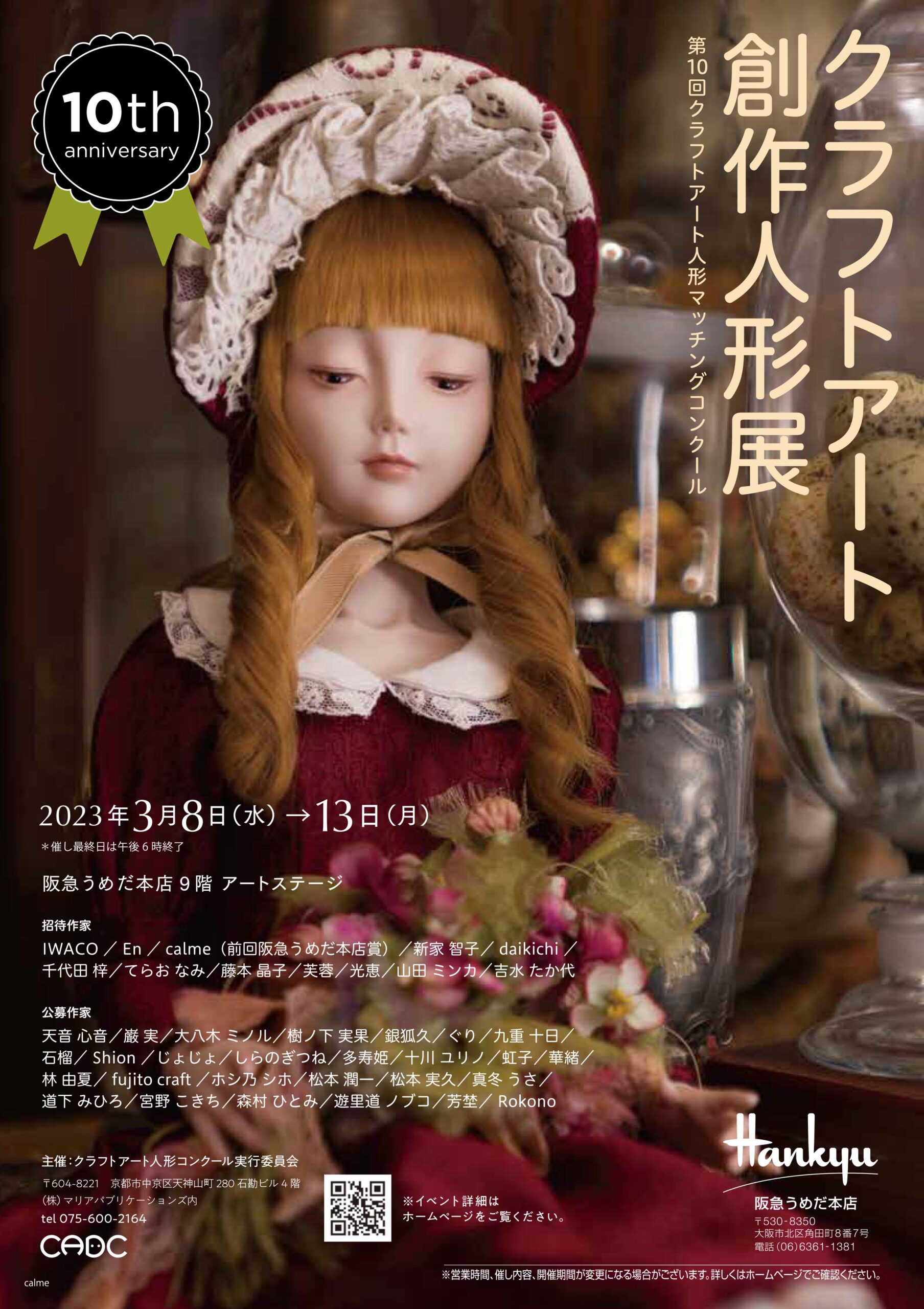 | 2023年3月8日~13日 | クラフトアート創作人形展(第10回クラフトアート人形マッチングコンクール)~10th anniversary~【大阪展】 | 大阪・阪急うめだ本店 9階アートステージ | ![]() |