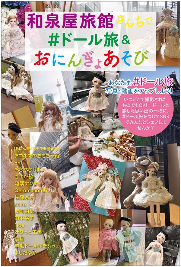 | 2021年7月17日~20日 | 和泉屋旅館さんちで#ドール旅&おにんぎょあそび | 京都・和泉屋旅館 客室 | ![]() | 旅行業も直撃したコロナ禍で、旅館を使ったイベントを手掛けた。 |